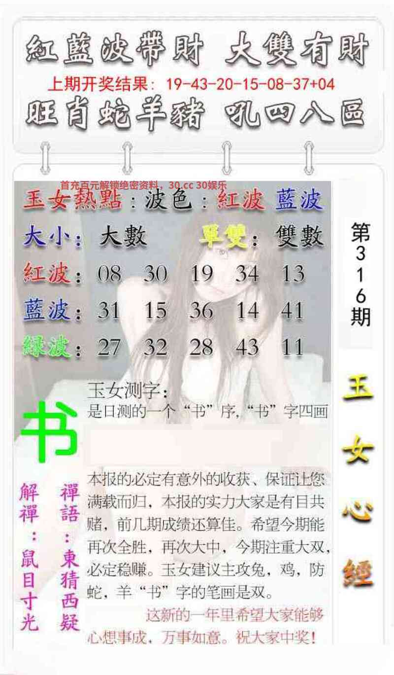316期澳门彩票中心开马24 波色:红波蓝波 头数:123头 尾数:8421569尾 生肖:狗猪虎鼠羊马兔蛇牛 平特:狗狗狗 |